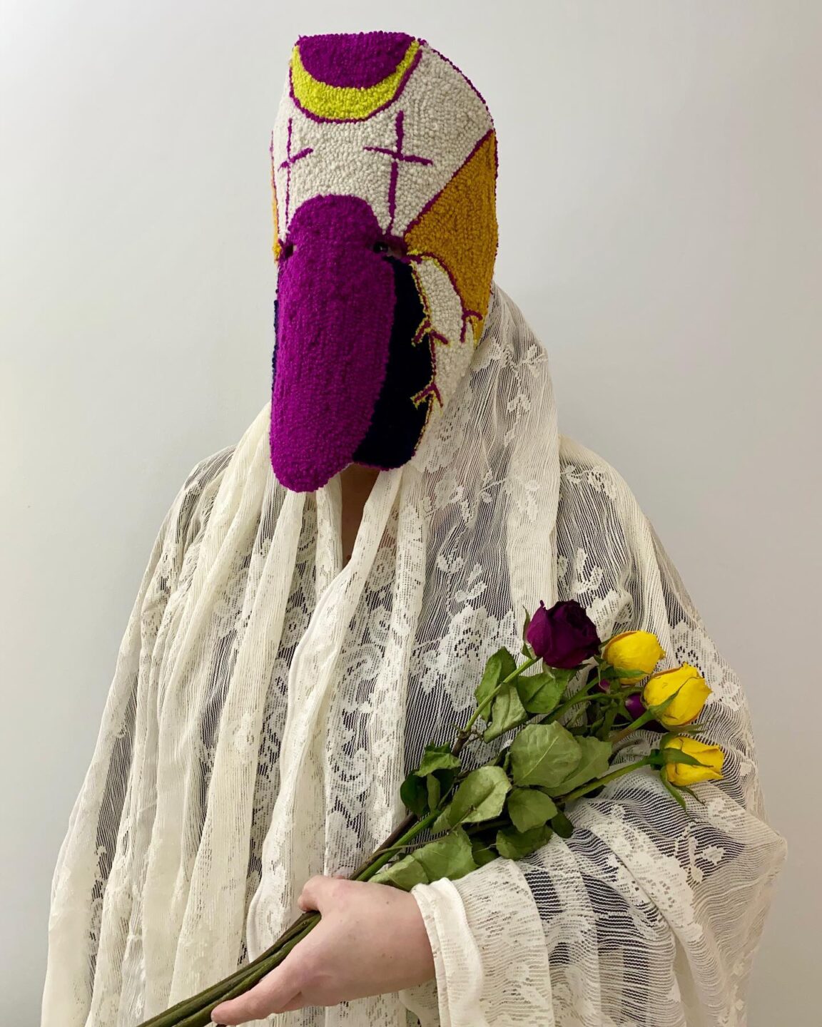 'Mask XVII' with roses, the artist's portrait, as taken with all masks